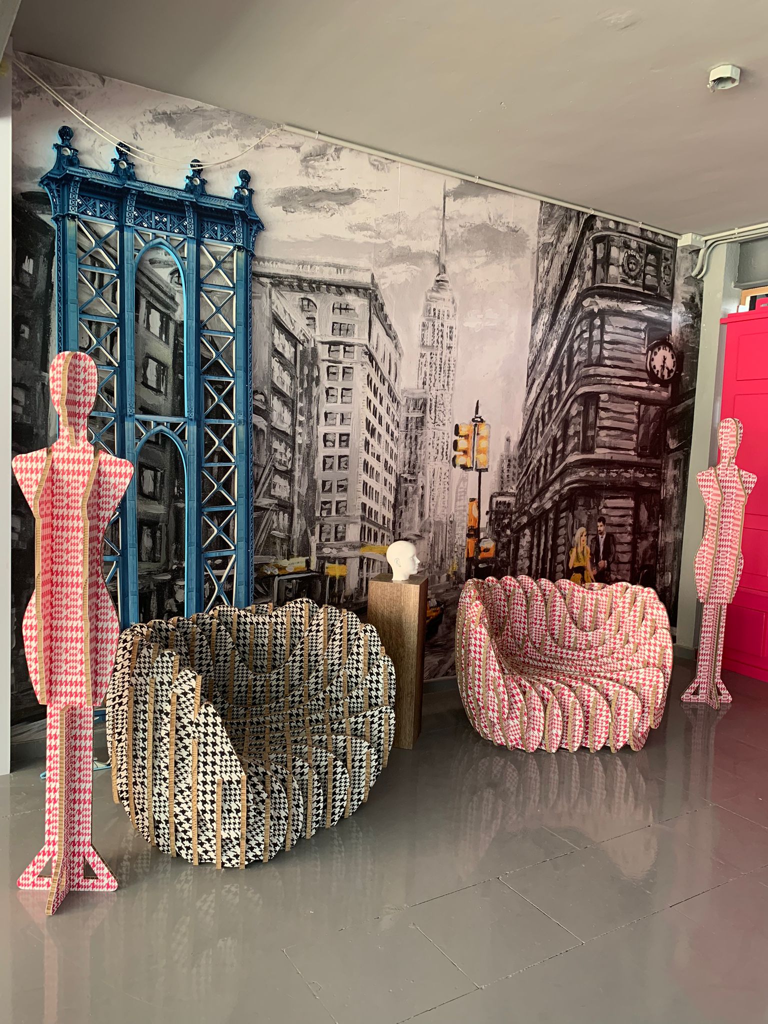 íntegramente en cartón técnico, un material reciclado, reciclable y completamente personalizable que